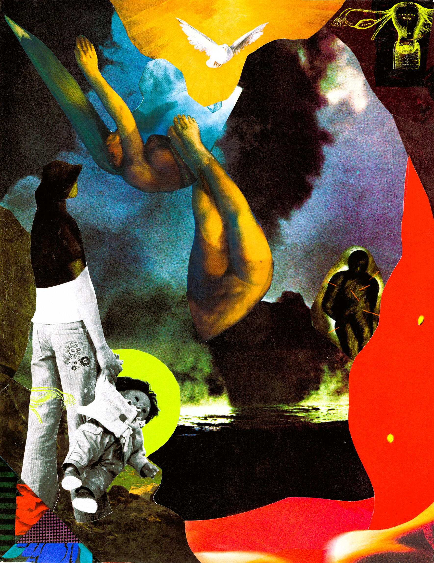 This piece explores how life’s earliest moments are marked not only by hope but by inherited power struggles and the subtle violence of prescribed existence. In this tableau, I showcase the uterus, shadowed and isolated, standing as a silent testament to the political structures shaping bodies and futures.Innocence is showcased as both fragile and burdened as we witness the detachment and disregard of children. Here, one of them glows like a small sun, even as their arm dangles in someone else’s grasp like a question of worth.Beneath a yellow heaven and the illusion of peace, a severed body drifts upside down suspended between flight and drowning; limbs unanchored, histories reversed. This was a dream of memory, power, restrained gestures, n the uneasy (sometimes violent) handoffs in life.Nothing is still, and yet no one escapes. Confrontation is the only way.